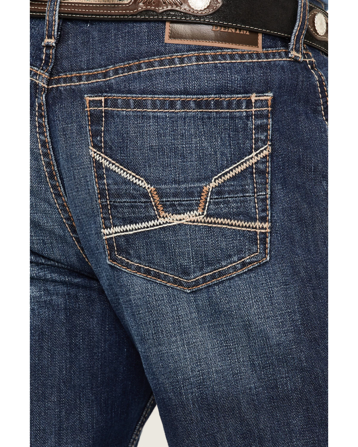 - Shaped stitching pattern on back pockets