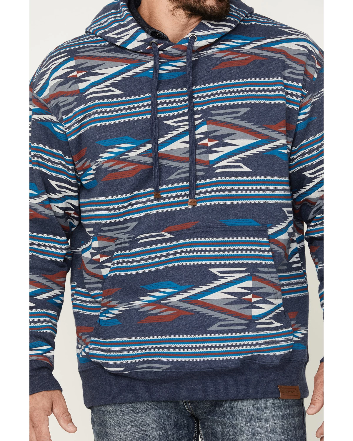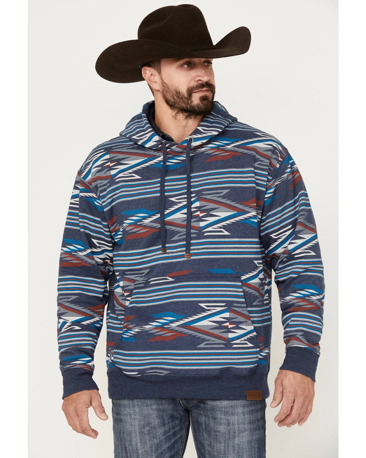 - Ariat logo patch sewn on hem