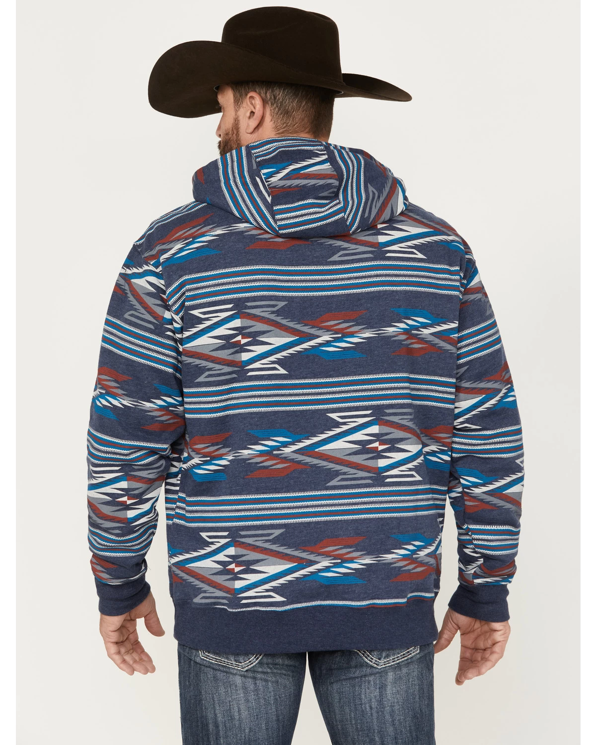 - Allover blue, white and red Southwestern print