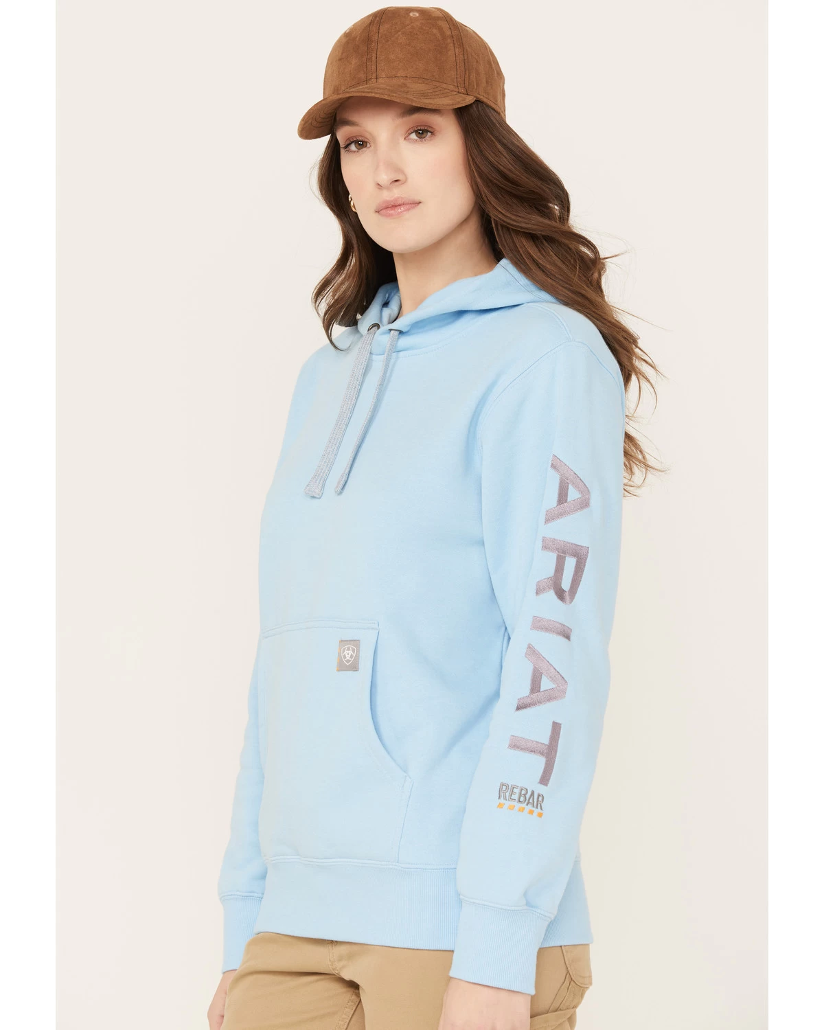 - Solid light blue design with Ariat Rebar logo embroidered on sleeve