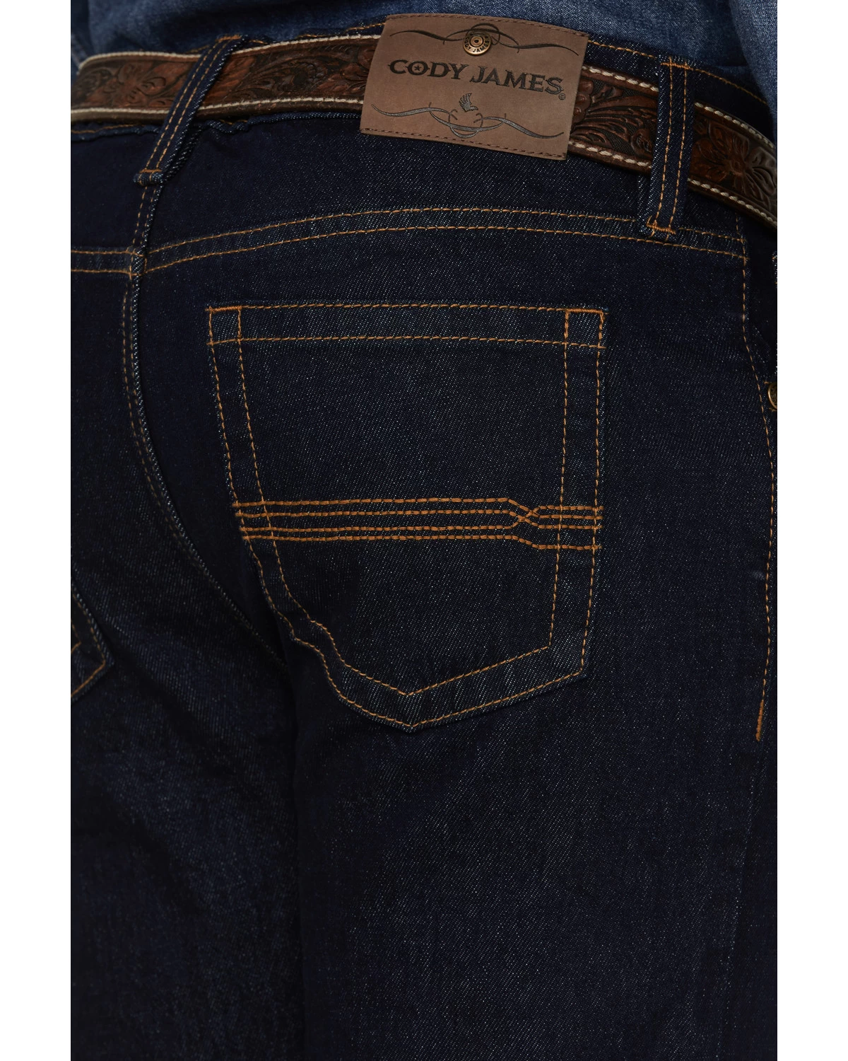 - Straight khaki stitching across back pockets