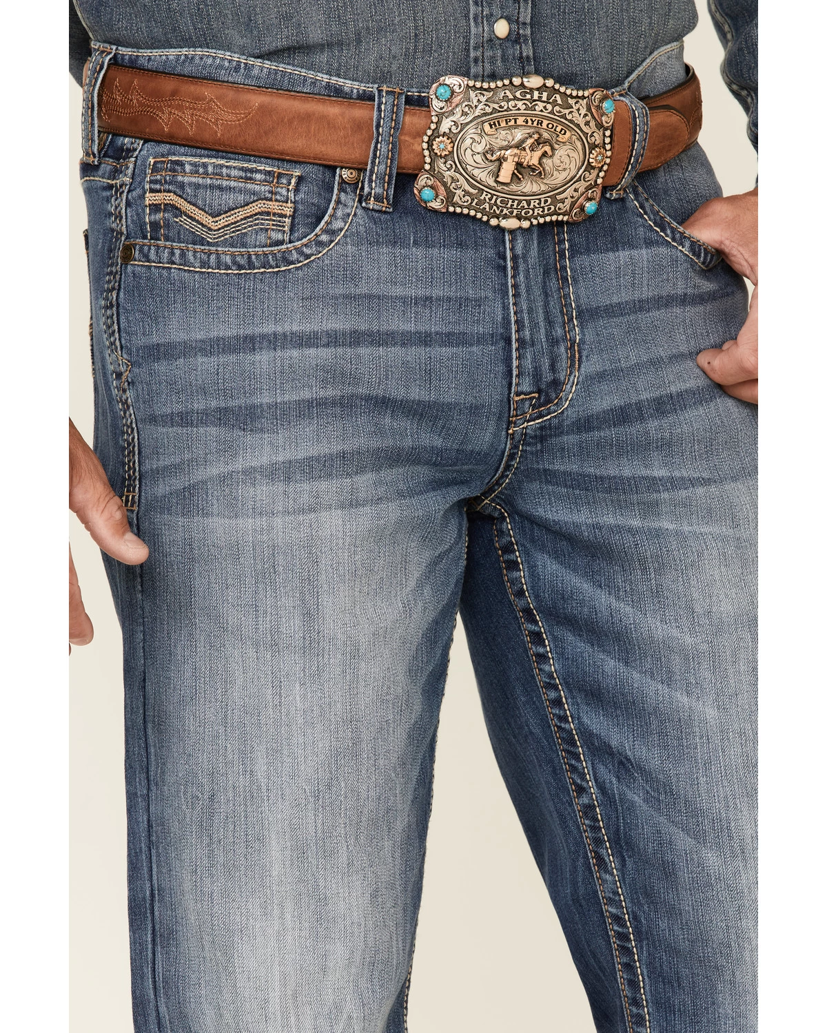 - “V” stitching details on back pockets