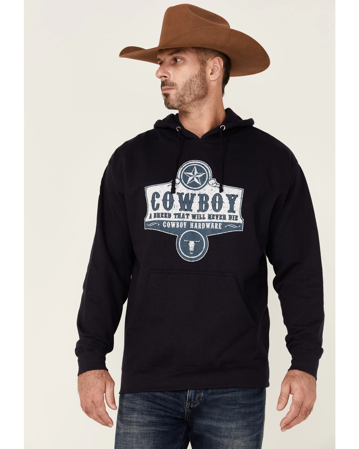 - “Cowboy A Breed That Will Never Die” with logo, star, and steerhead graphic on front