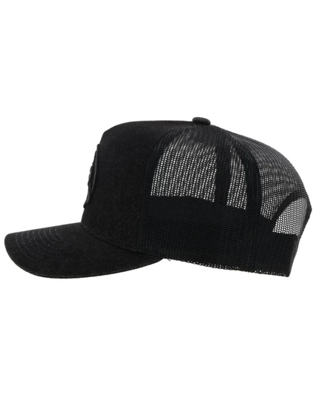 - Allover black with black circle logo patch on front