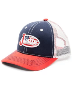 - Embroidered “Justin” American flag logo on front