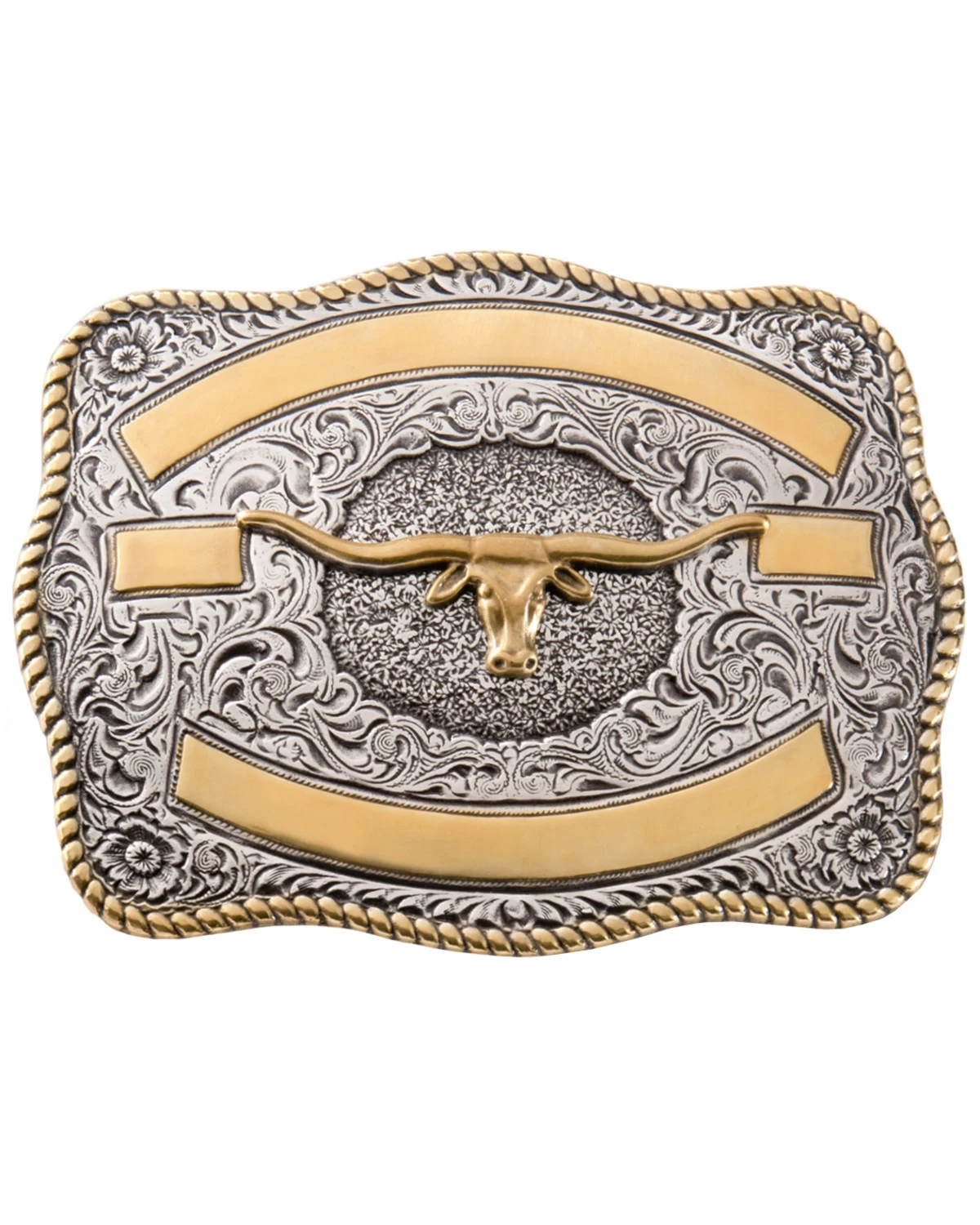 - Eye-catching silver and gold plated western belt buckle