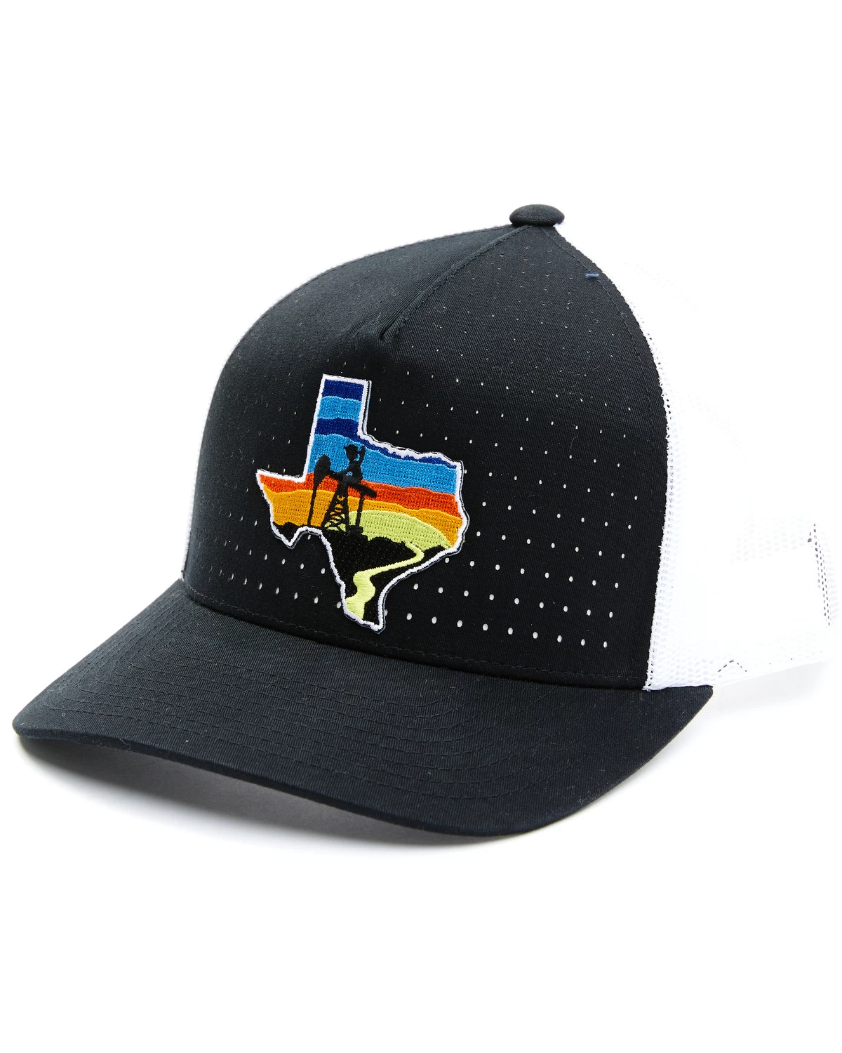 Oil Field Hats Men’s Black & White Texas State Sunset Patch Golf Mesh-Back Ball Cap