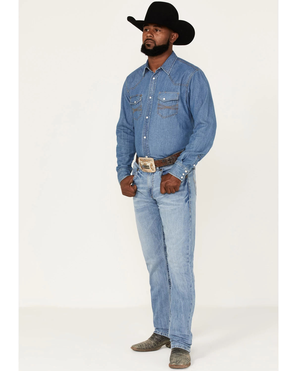 Rock 47 By Wrangler Men’s Crazy Ivan Light / Medium Wash Slim Straight Stretch Denim Jeans
