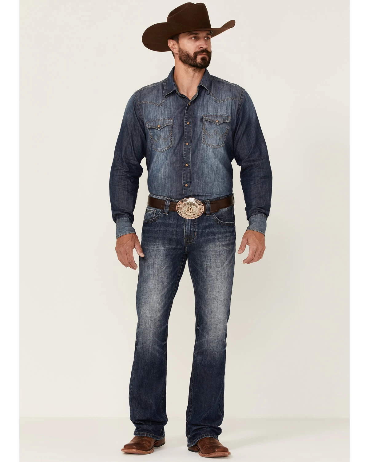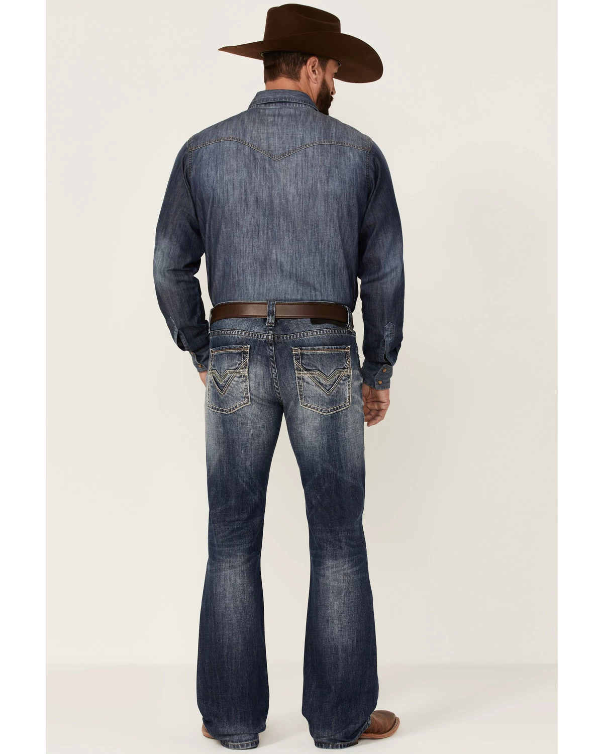- Heavy “V” stitched embroidery detail on back pockets