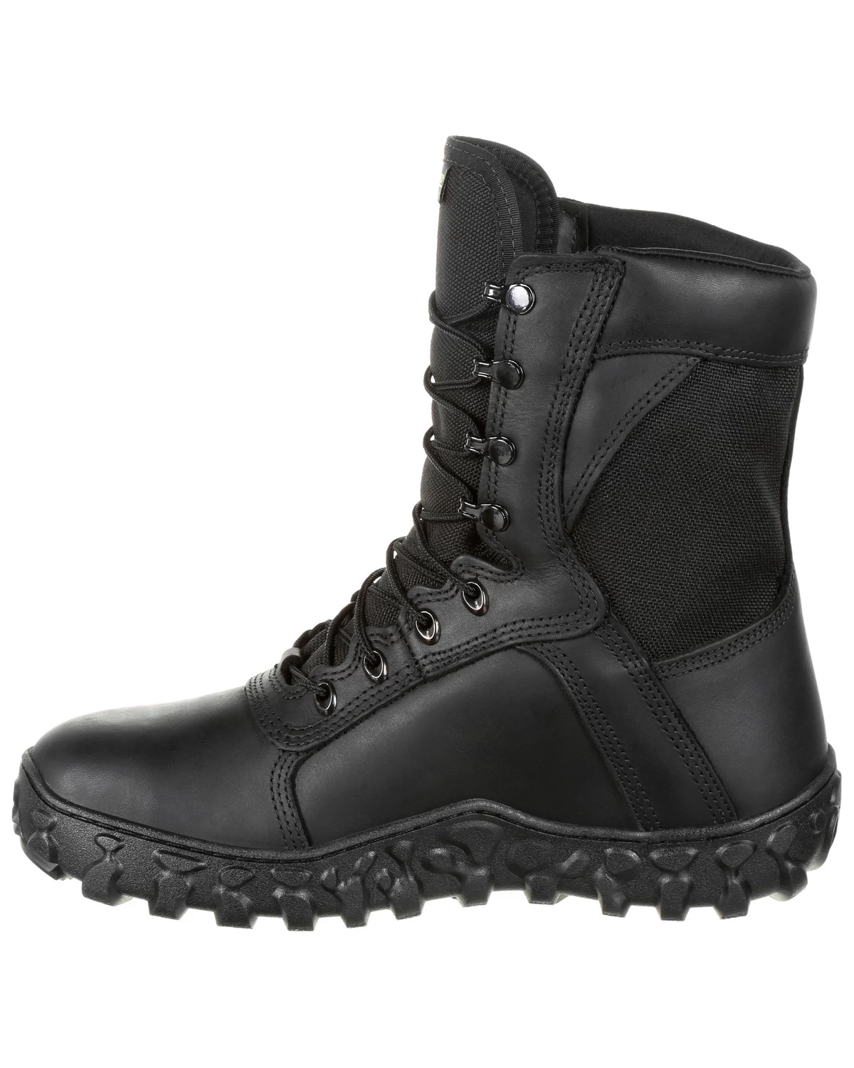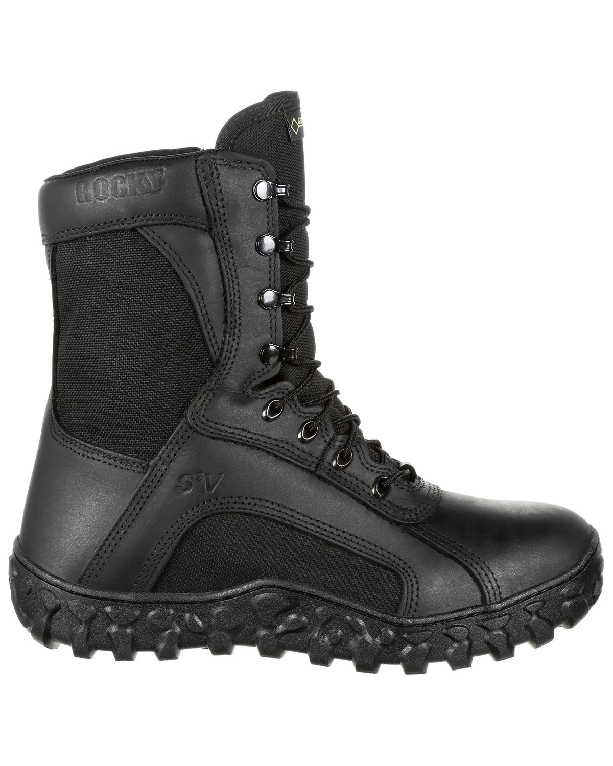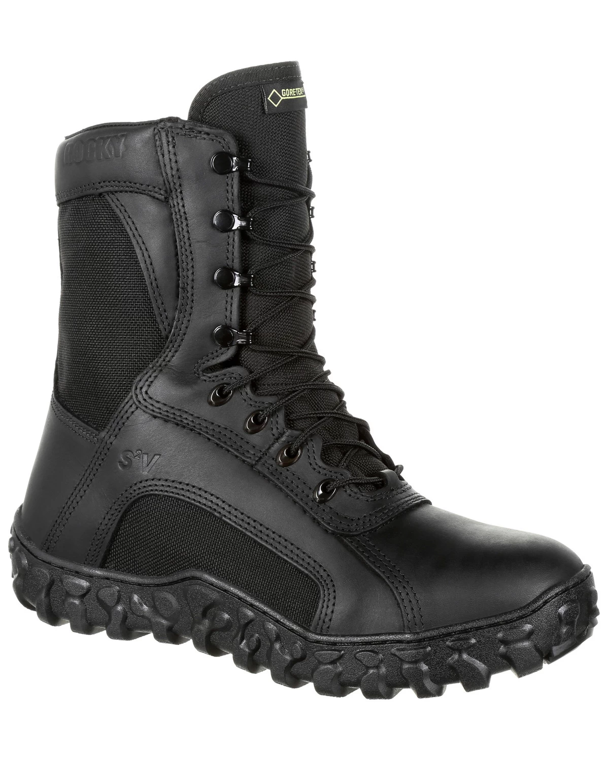 These Rocky Men’s S2V Insulated Waterproof Military Boots are fully-loaded. These full-grain leather boots sport an 8″ lace-up shaft and round toe. These boots are waterproof to keep you dry in wet conditions. These boots feature 600 grams of thermal insulation. They are PTFE coated for flame-resistance. The Airport cushion footbed keeps you supported for a day on your feet. These boots have a durable and stable rubber outsole. A 1 1/2″ heel finishes these military boots. For the soldier who leaves it all on the battlefield, these boots give back just as much in return. Made in the USA.