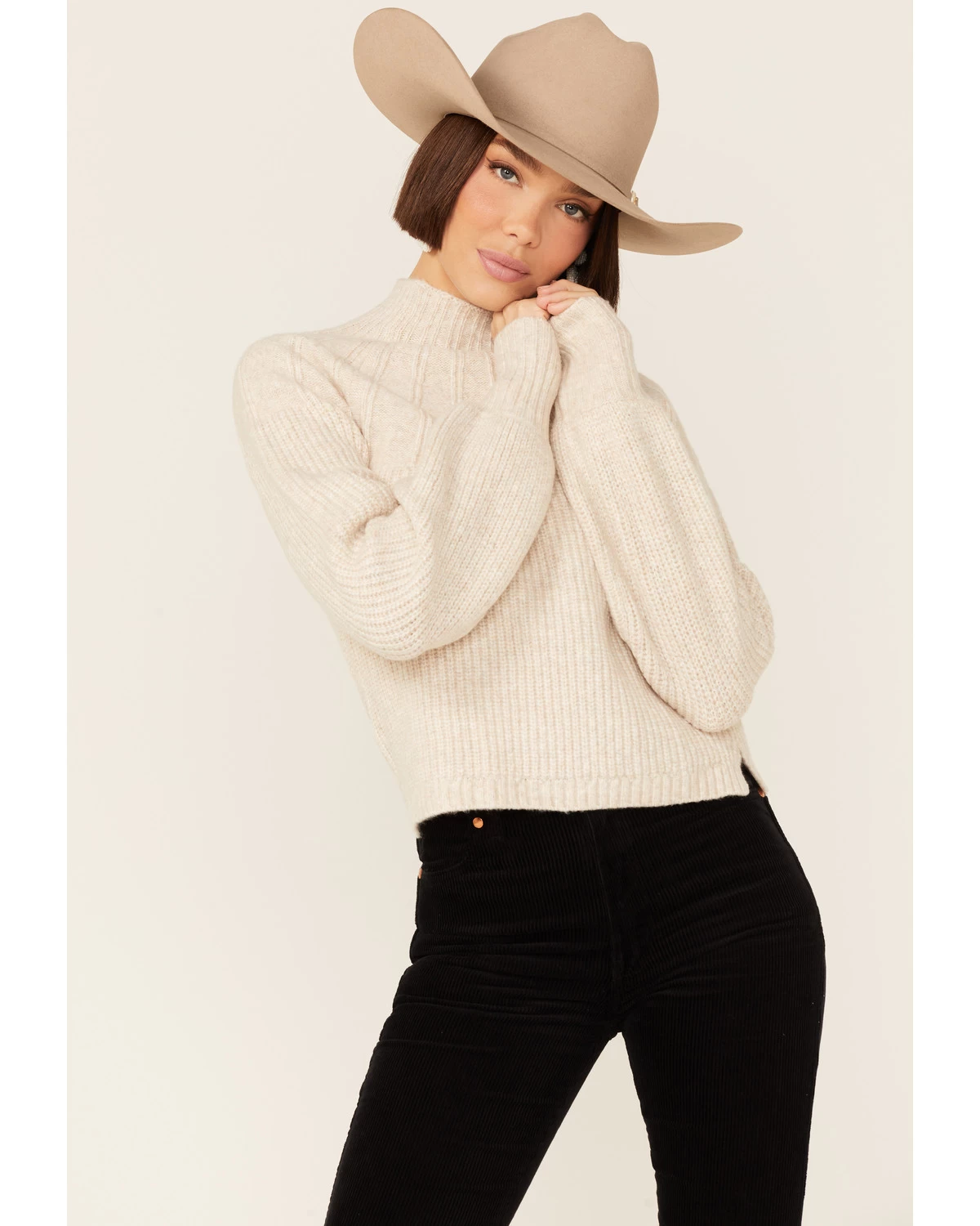 - Ribbed tan wool blend design