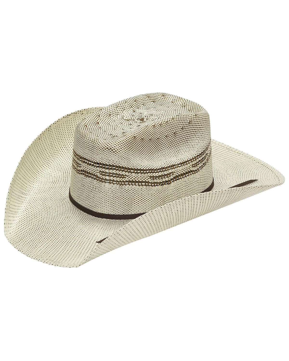 A true western hat for your little cowpoke! This straw cowboy hat features a vented hat crown. Ribbon hat band boasts “Twister” hat tack. Boxed cattleman crease hat crown measures 3 3/4″. Brim measures 3 3/4′. Imported.